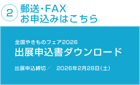 以下出展申込書をダウンロードの上、必要事項をご記入の上、郵送またはFAXでお送りください。