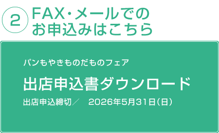 以下出店申込書をダウンロードの上、必要事項をご記入の上、FAXまたはメールでお送りください。